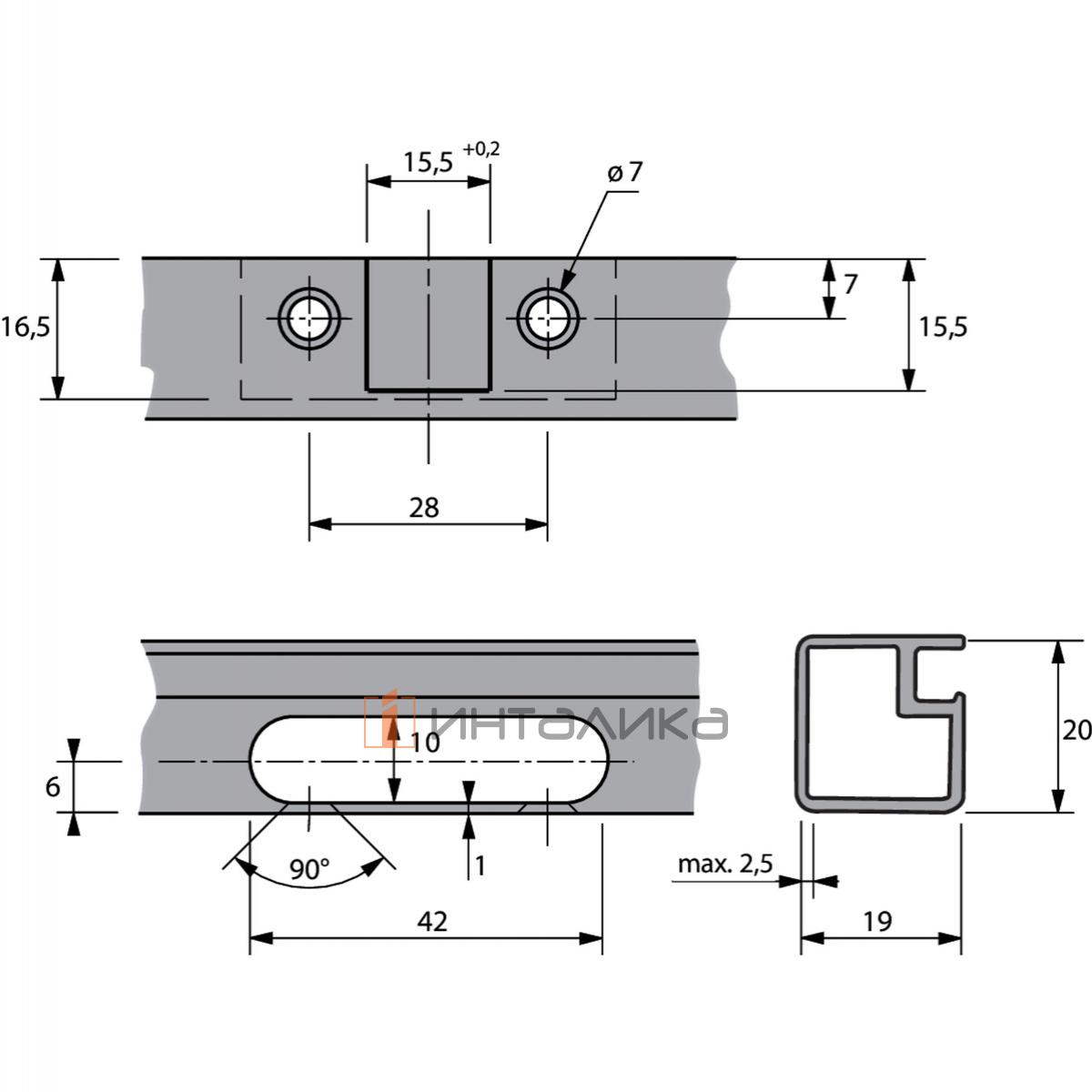 Применяется для открывания мебельных фасадов с алюминиевой рамой толщиной 19 мм