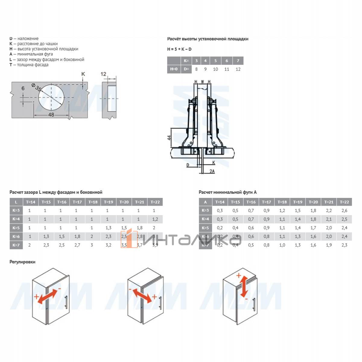 Комплектация: петля с предустановленной площадкой и саморезами, саморезы для крепежа в цвет петли, заглушка
