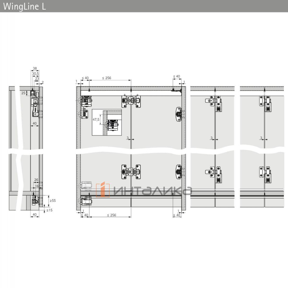 Комплект фурнитуры HETTICH WingLine L (2024) с нижним направляющим элементом Medium, без функции самозакрывания для складных дверей