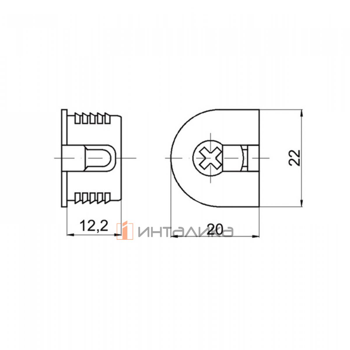 Сферический эксцентрик используется для установки полки сверху, в случае монтажа снизу требуется сквозное отверстие в панели