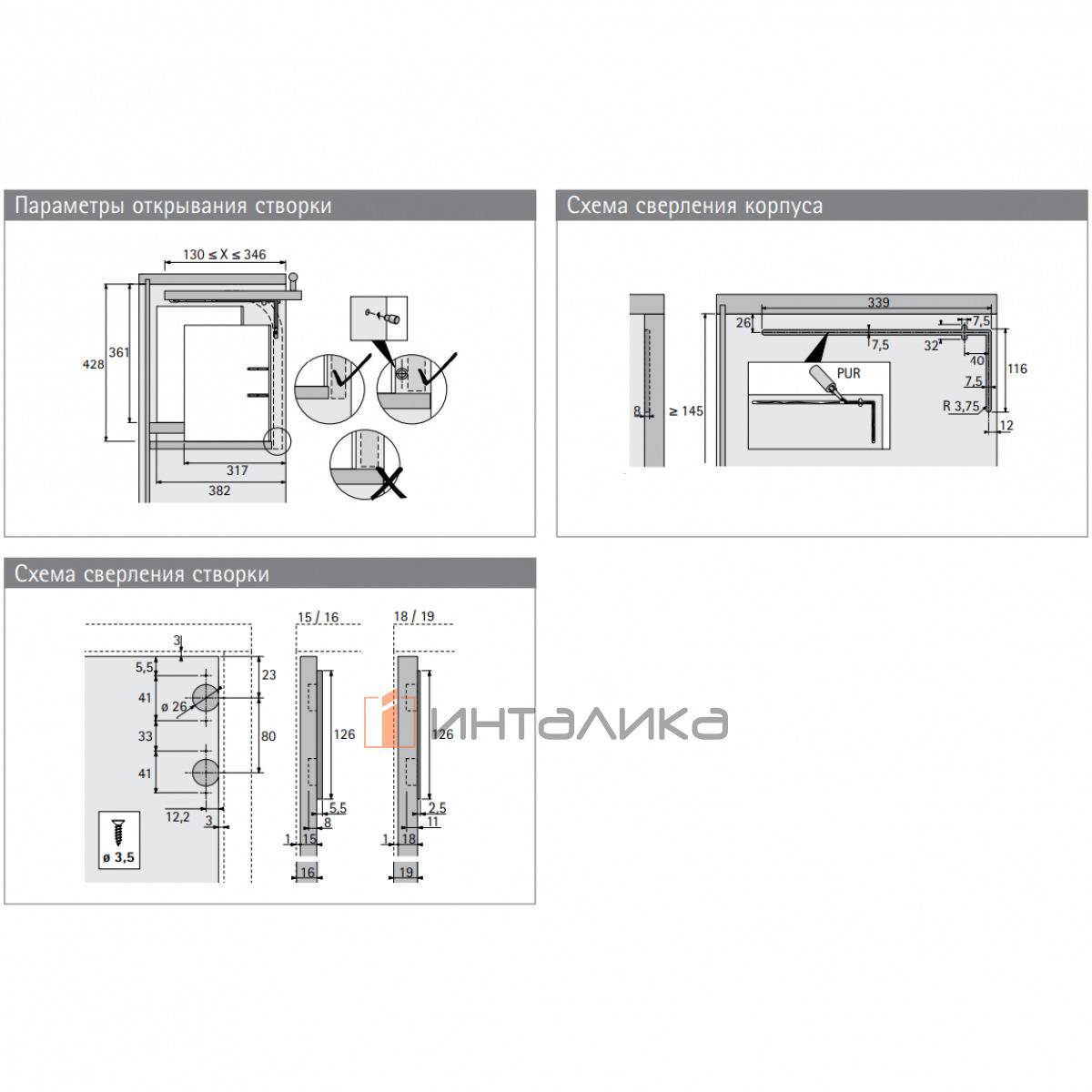 Комплект 2 петель с принадлежностями для подъемно-задвижных створок HETTICH Lift Up