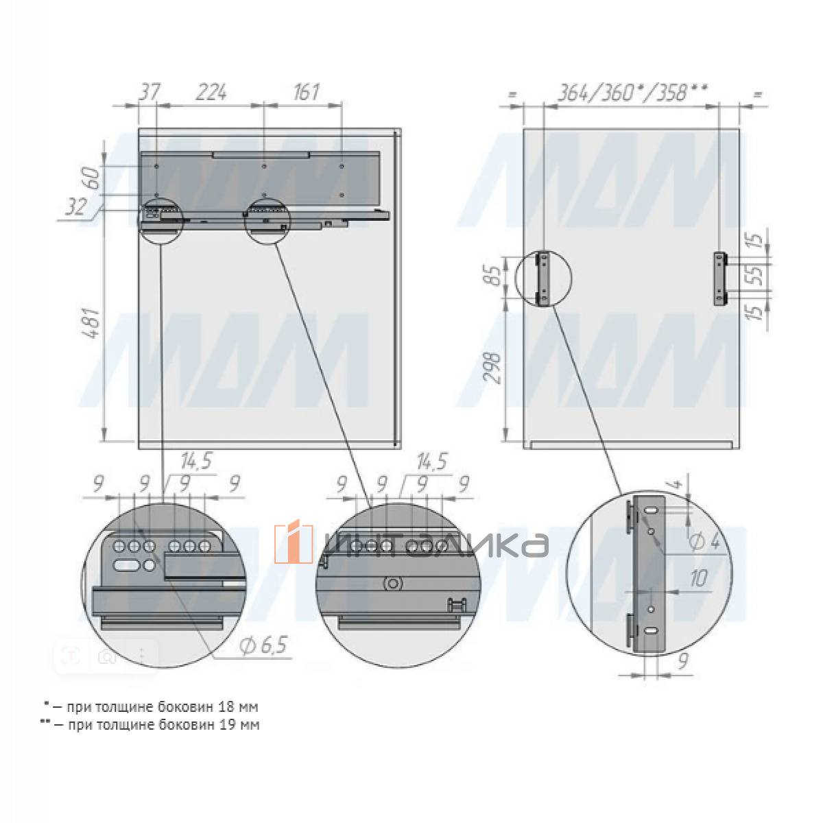 • толщина боковин корпуса из ДСП: 16/18 мм