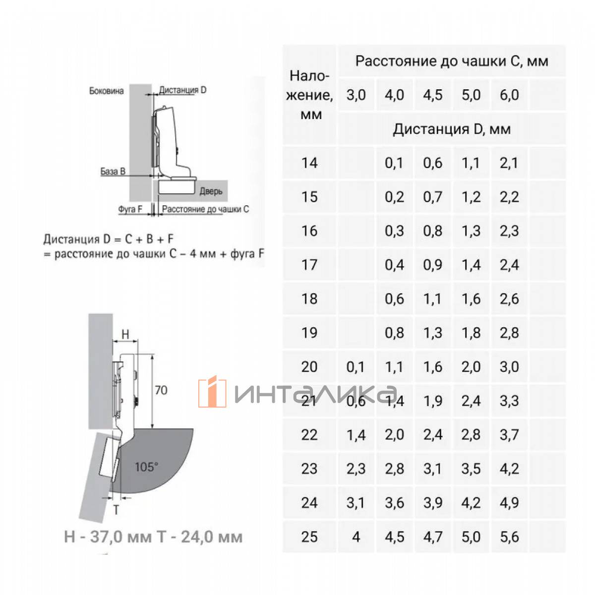 Скрытая петля Hettich Onsys 105 градусов, вкладная, со встроенным демпфером Silent System