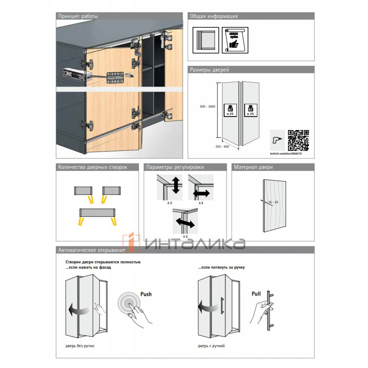 Набор HETTICH WLL MEDIUM STANDART PRO 4 створки L2400, H500-1000, B250-600, G8-12, антрацит, WLL25AP