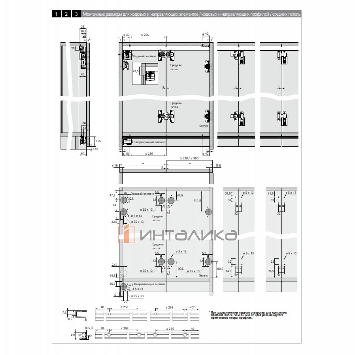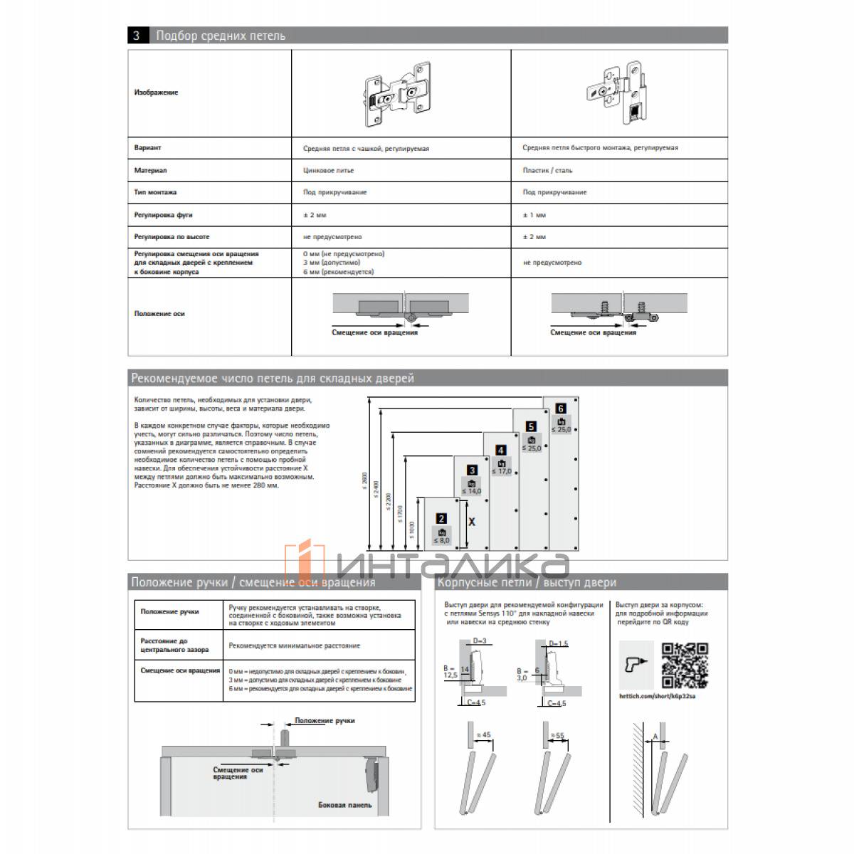 Комплект 3 средних петель HETTICH, для складных дверей, с регулировкой оси, под прикручивание
