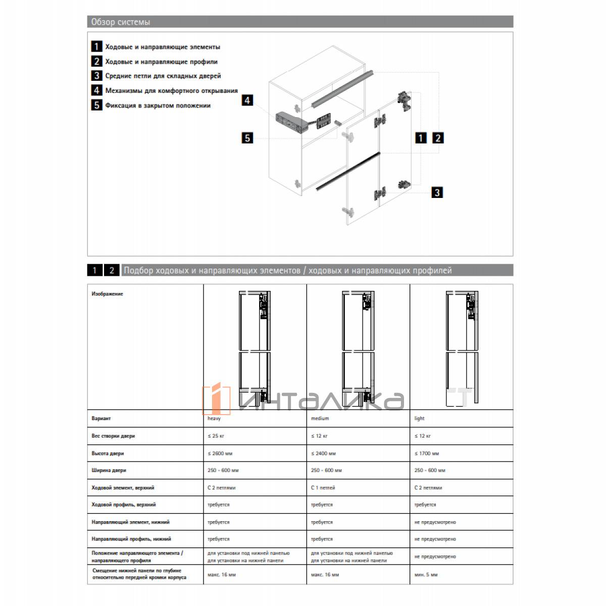 Примечание: петли для крепления складных дверей к корпусу в комплект не входят и заказываются отдельно