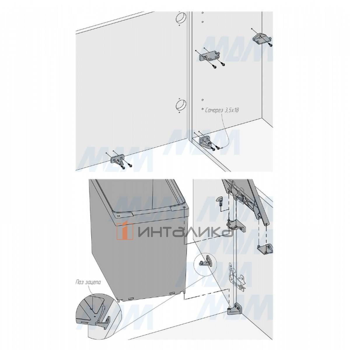 • устанавливается и фиксируется на боковине корпуса с помощью саморезов (входят в комплект);