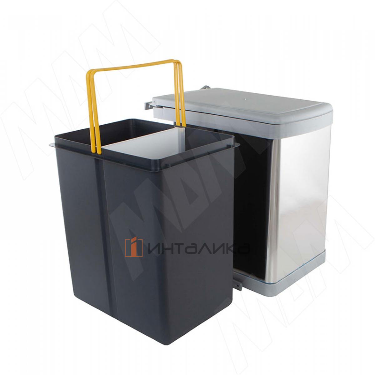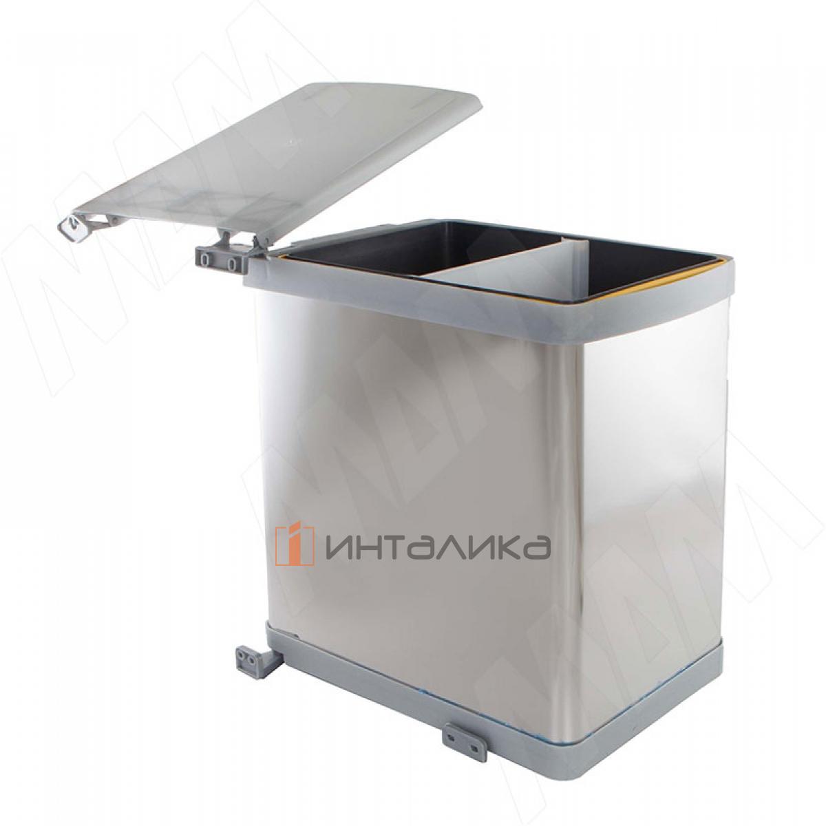 LINEA Ведро для мусора подвесное 21л с крышкой, с крепежом, серый металлик, 6200MT1IX