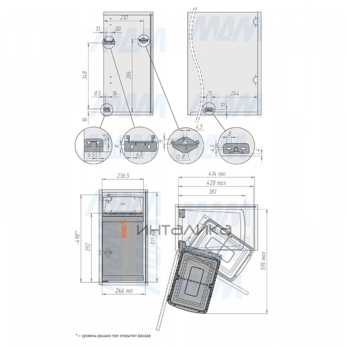 • используется с прямым или угловым корпусом с распашным фасадом;