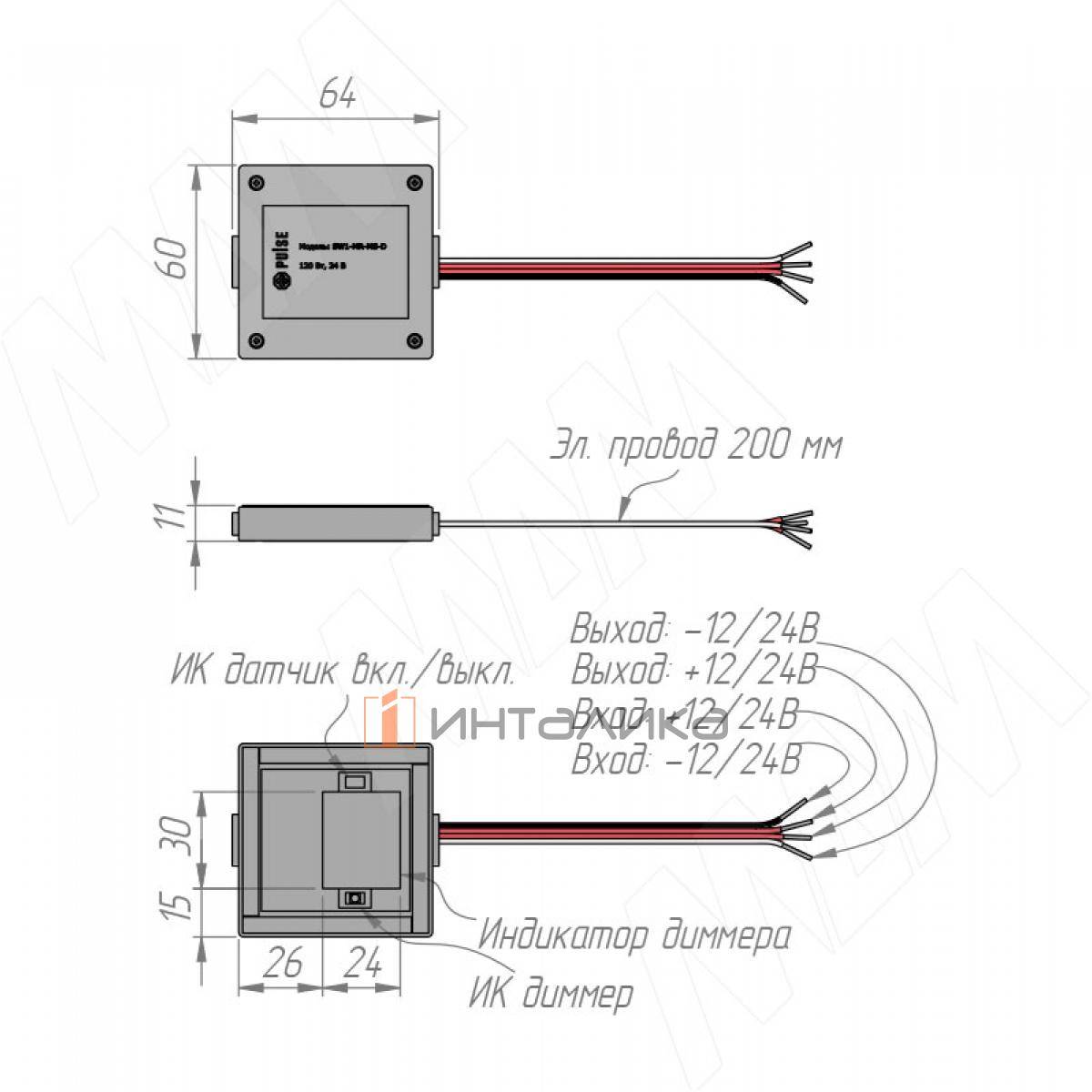 Принцип работы: при однократном взмахе рукой вблизи датчика - светильник включается, при повторном взмахе - светильник выключается, при удержании кисти руки перед датчиком - светильник диммируется