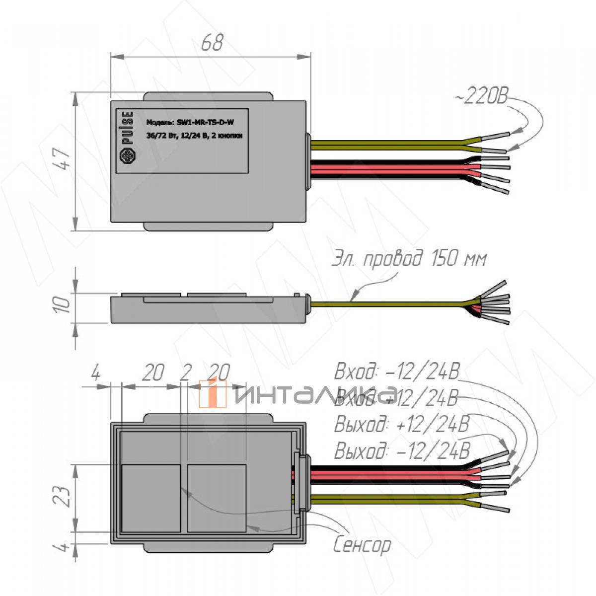 Принцип работы: при однократном касании первого сенсорного датчика - светильник включается, при повторном однократном касании - светильник выключается, при длительном касании - светильник диммируется.
