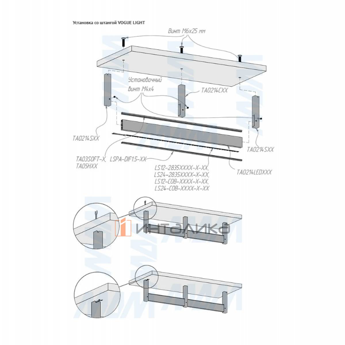 Специальные упоры внутри штангодержателя препятствуют передавливанию проводов при подключении светодиодной ленты в штанге VOGUE LIGHT