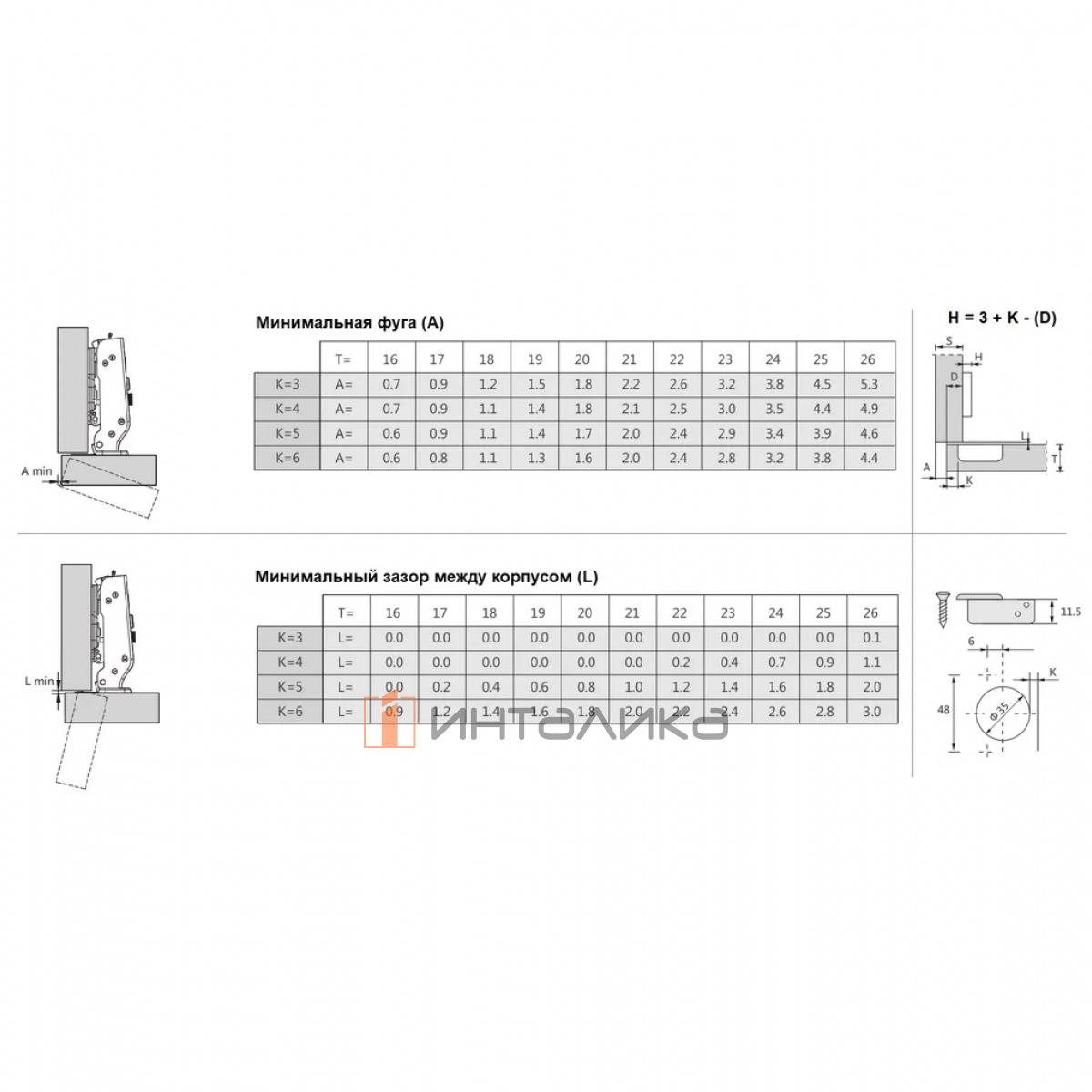 Скрытая мебельная петля FIRMAX Advanced Plus 110 градусов, полунакладная, без пружины