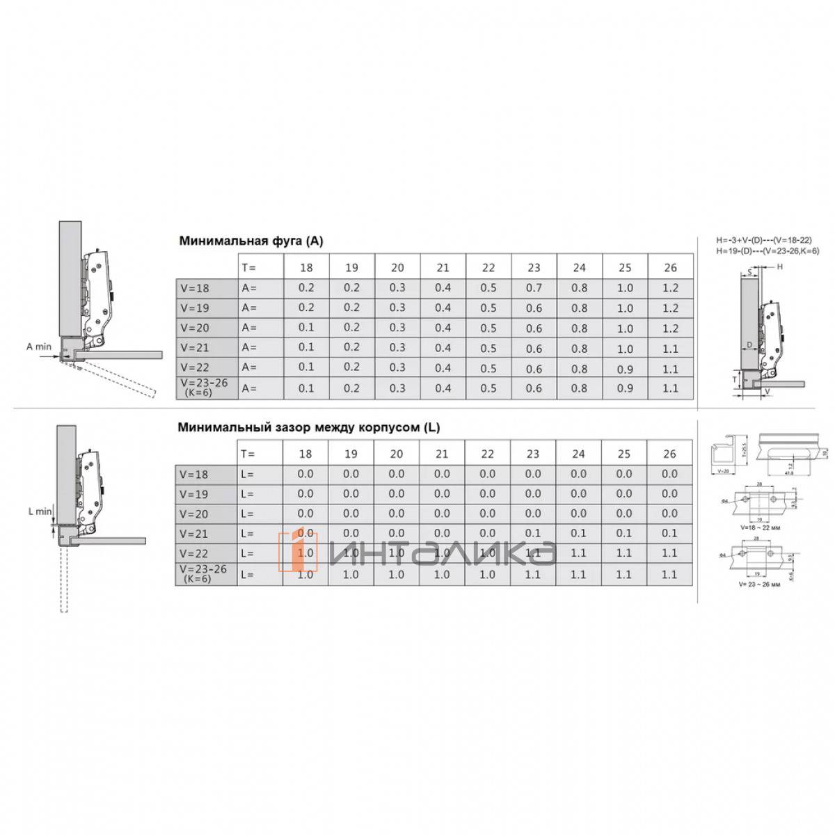 Применяется для открывания накладных фасадов толщиной от 19 до 22 мм