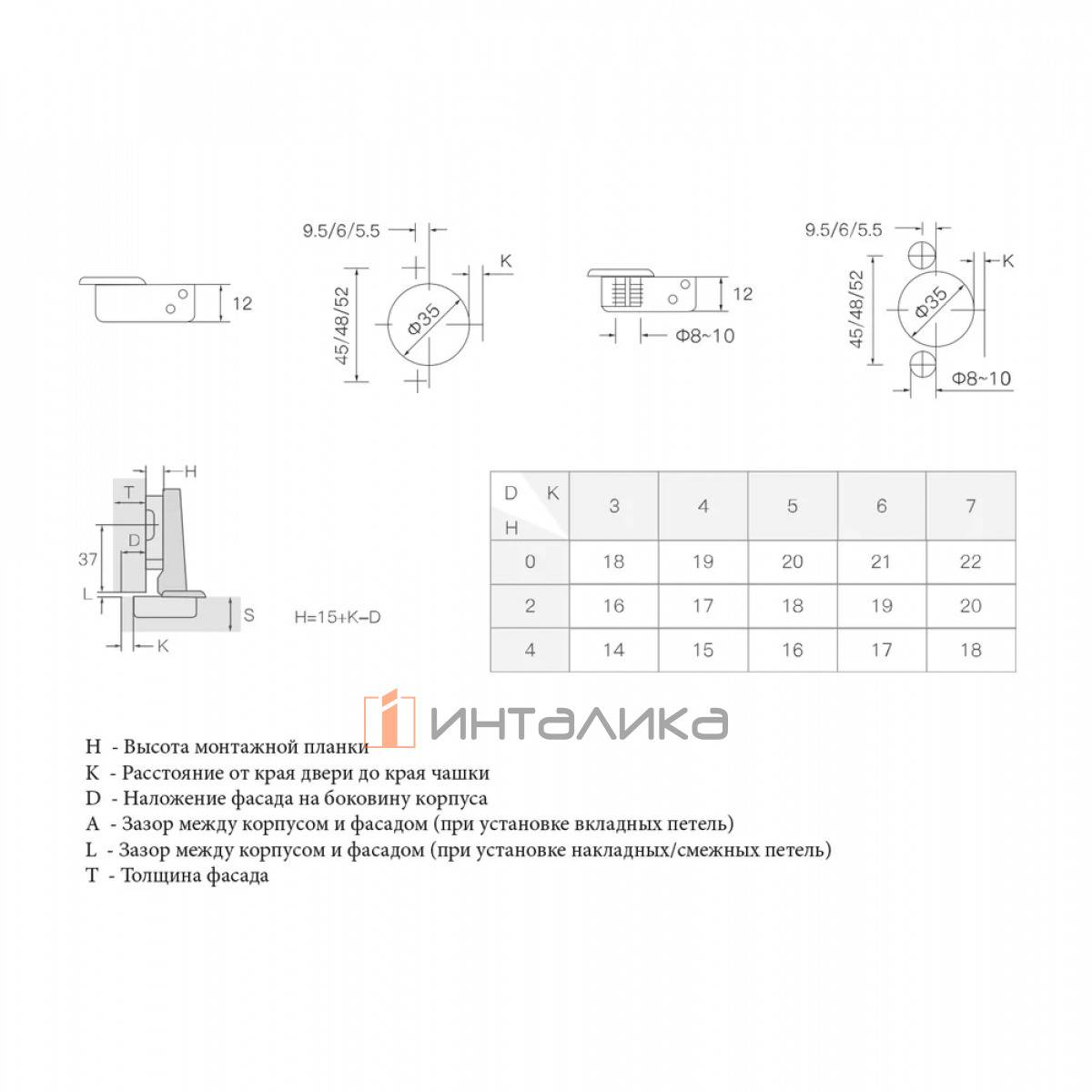 Скрытая мебельная петля FIRMAX Smartline 105°, накладная, без доводчика