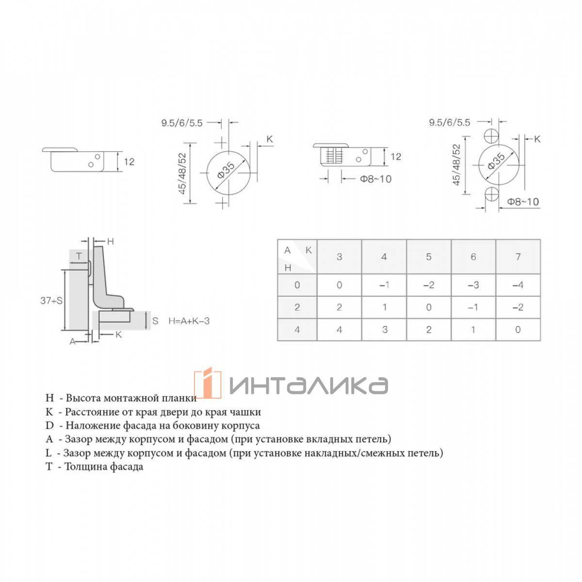 Скрытая мебельная петля FIRMAX Smartline 105°, вкладная