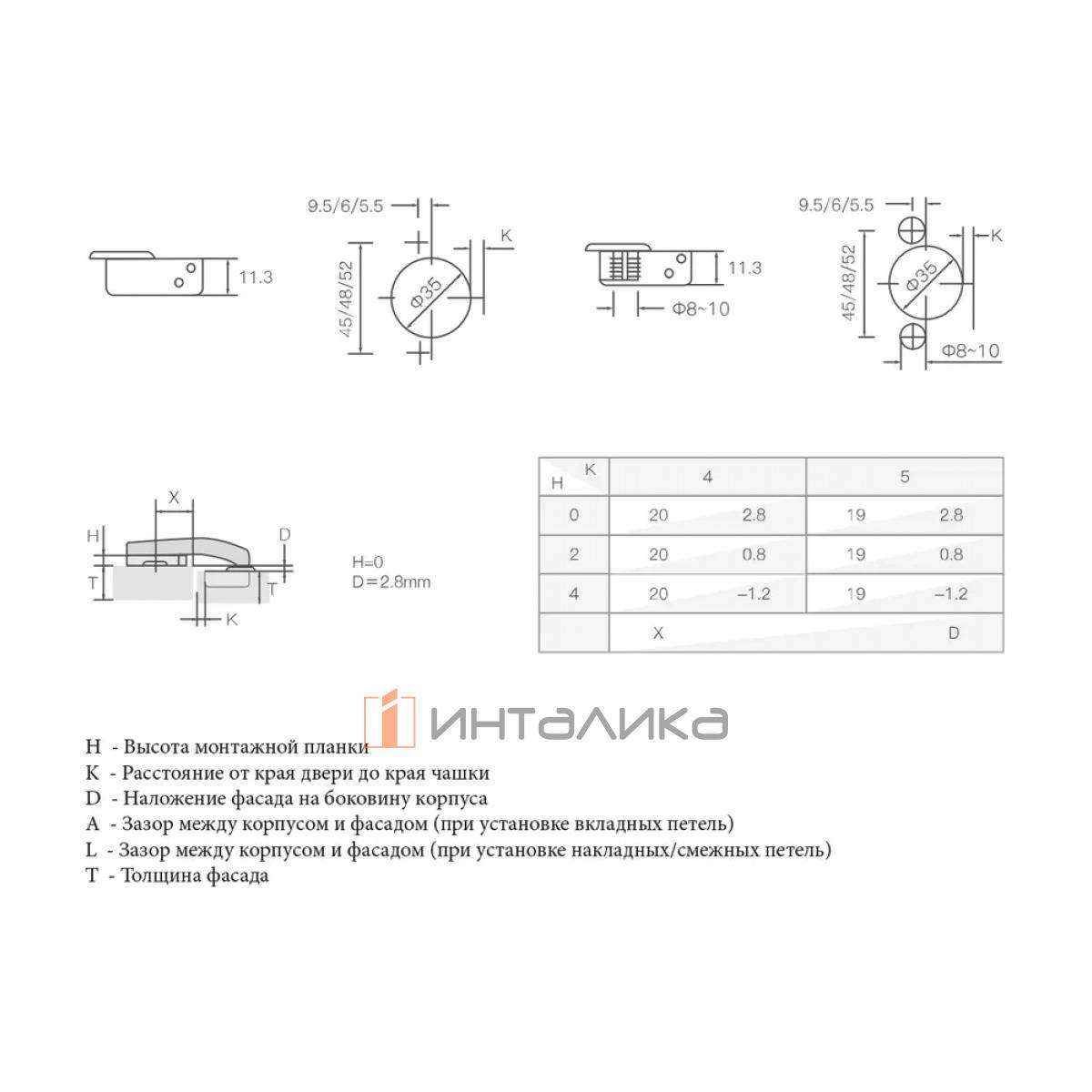 Диапазон наложения двери от - 1,2 до 2,8 мм