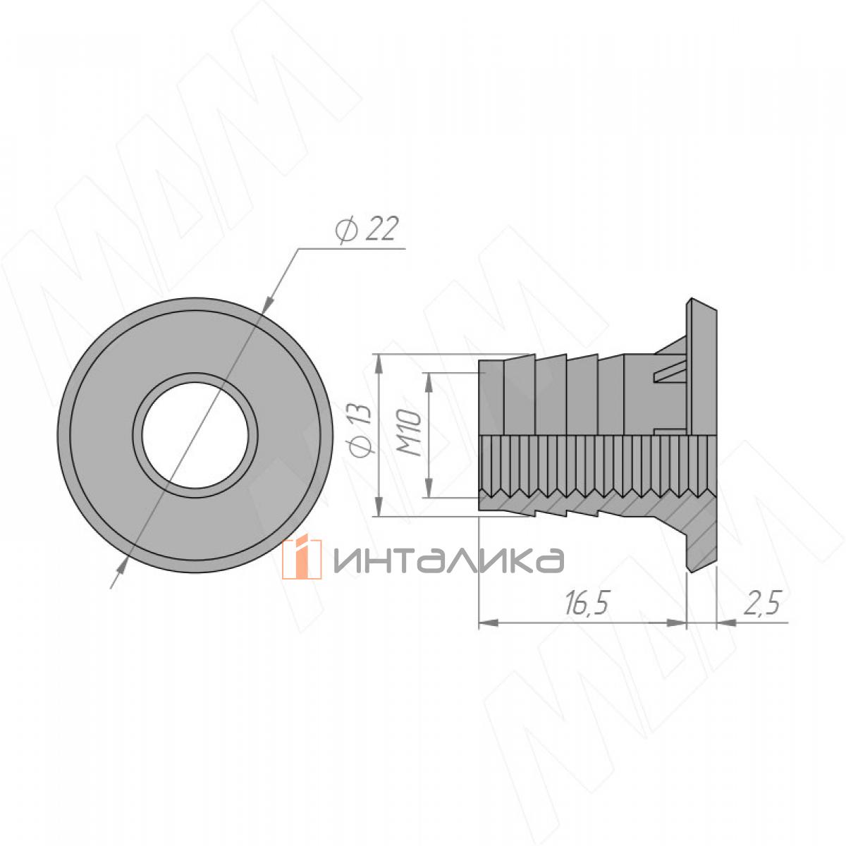 Гайка для ножки мебельной М10, LN M10 MP