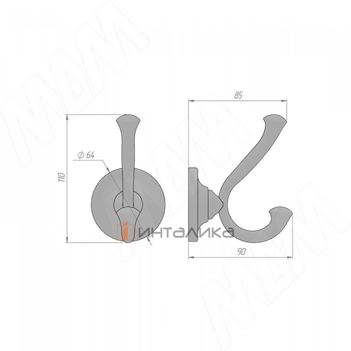 Крючок двухрожковый черный матовый, HK.38.BLM
