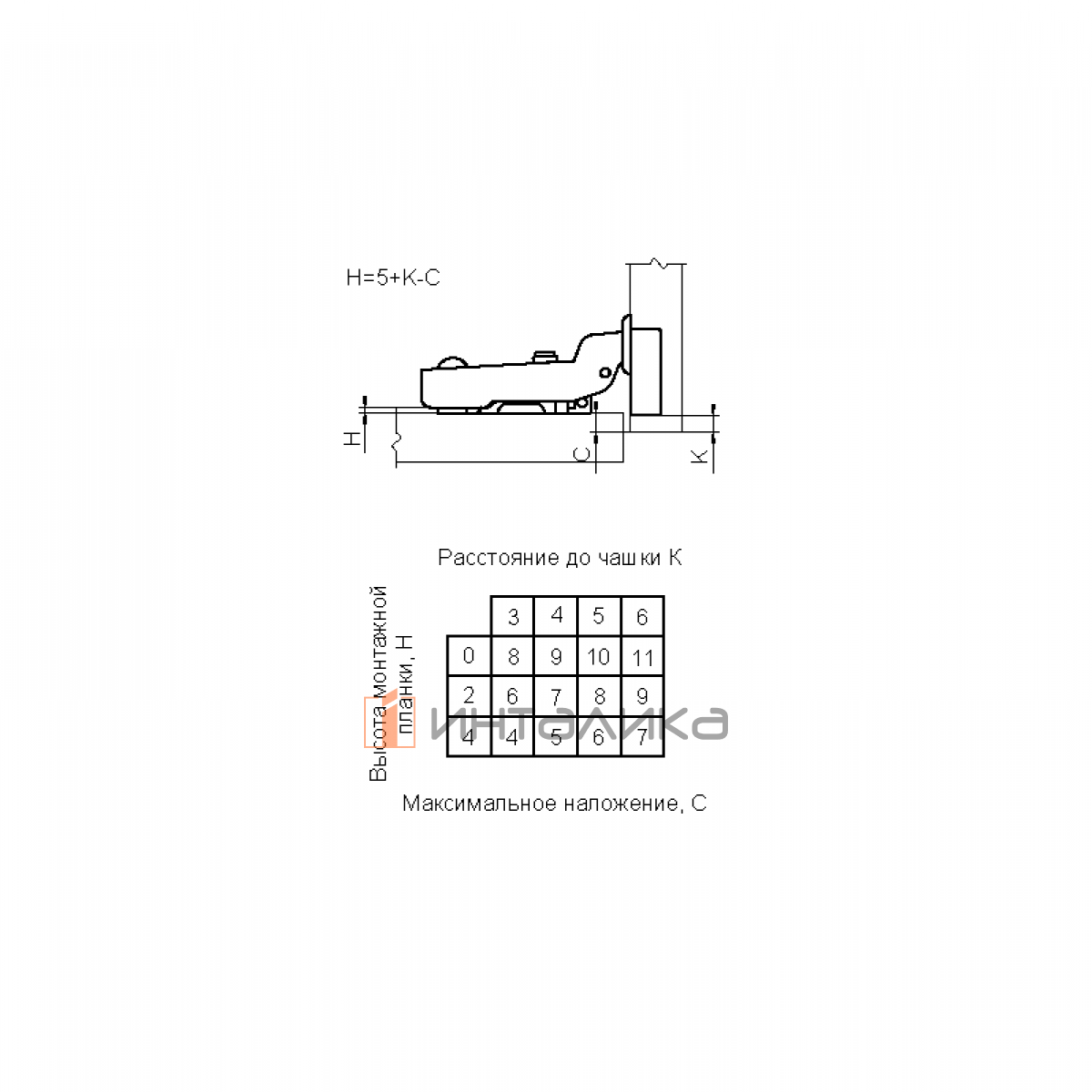 Четырехшарнирная мебельная петля FIRMAX Slide-on 110°, полунакладная, без доводчика