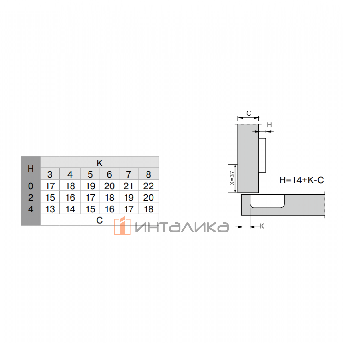 Применяется для открывания мебельных фасадов толщиной от 14 до 24 мм