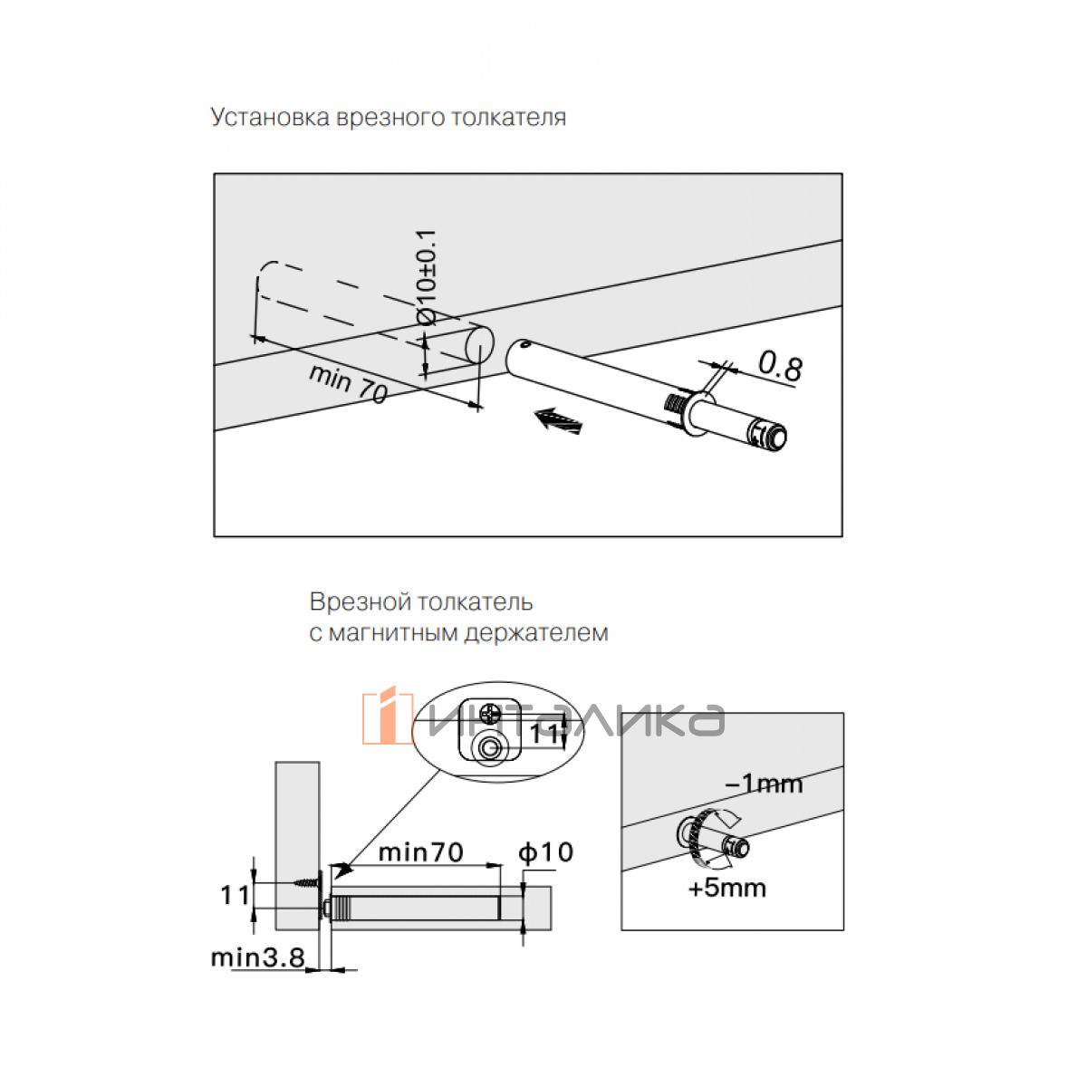 Врезной толкатель Push-Open для петель Firmax Smartline, скрытое крепление