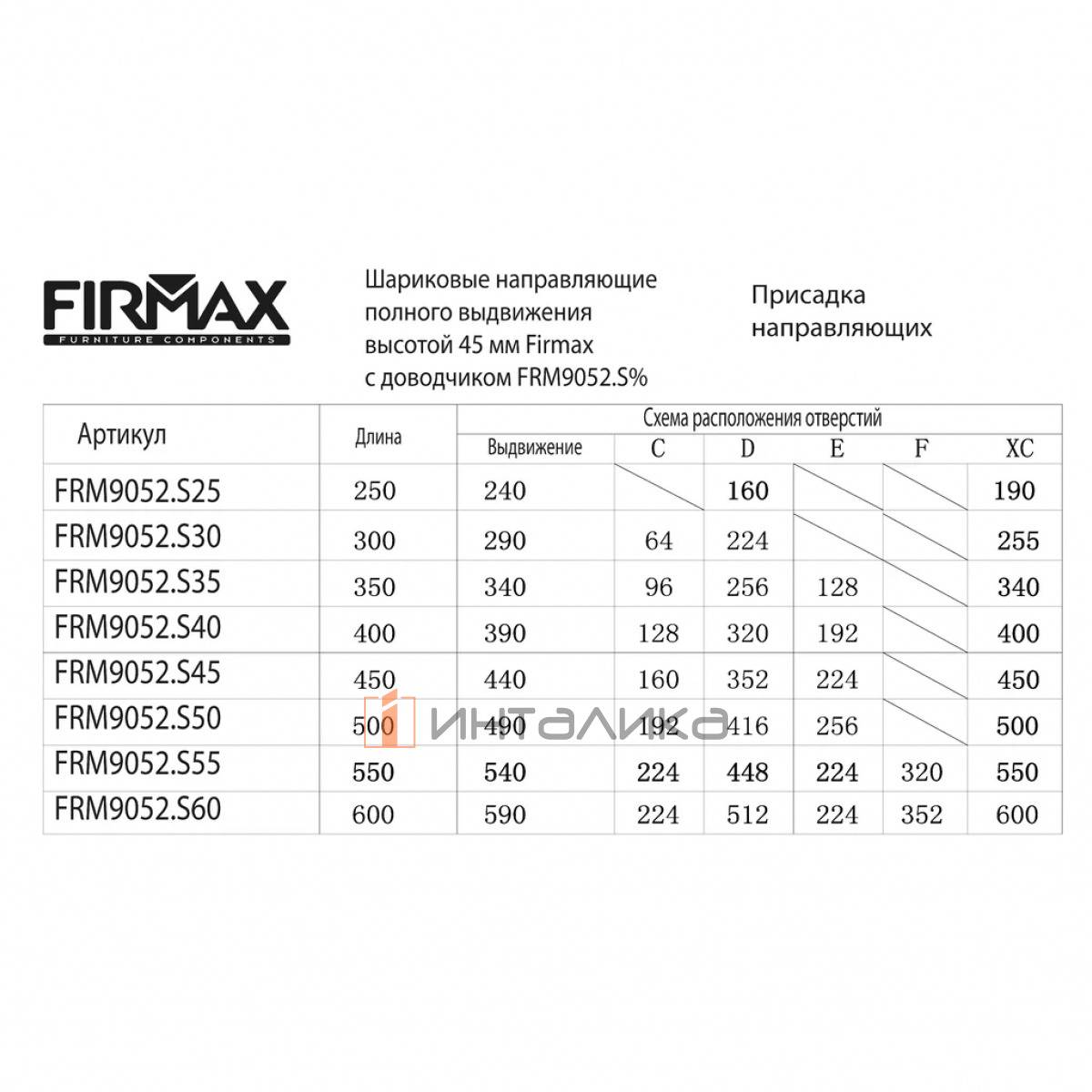 Комплект шариковых направляющих полного выдвижения Firmax Smartline для деревянных ящиков