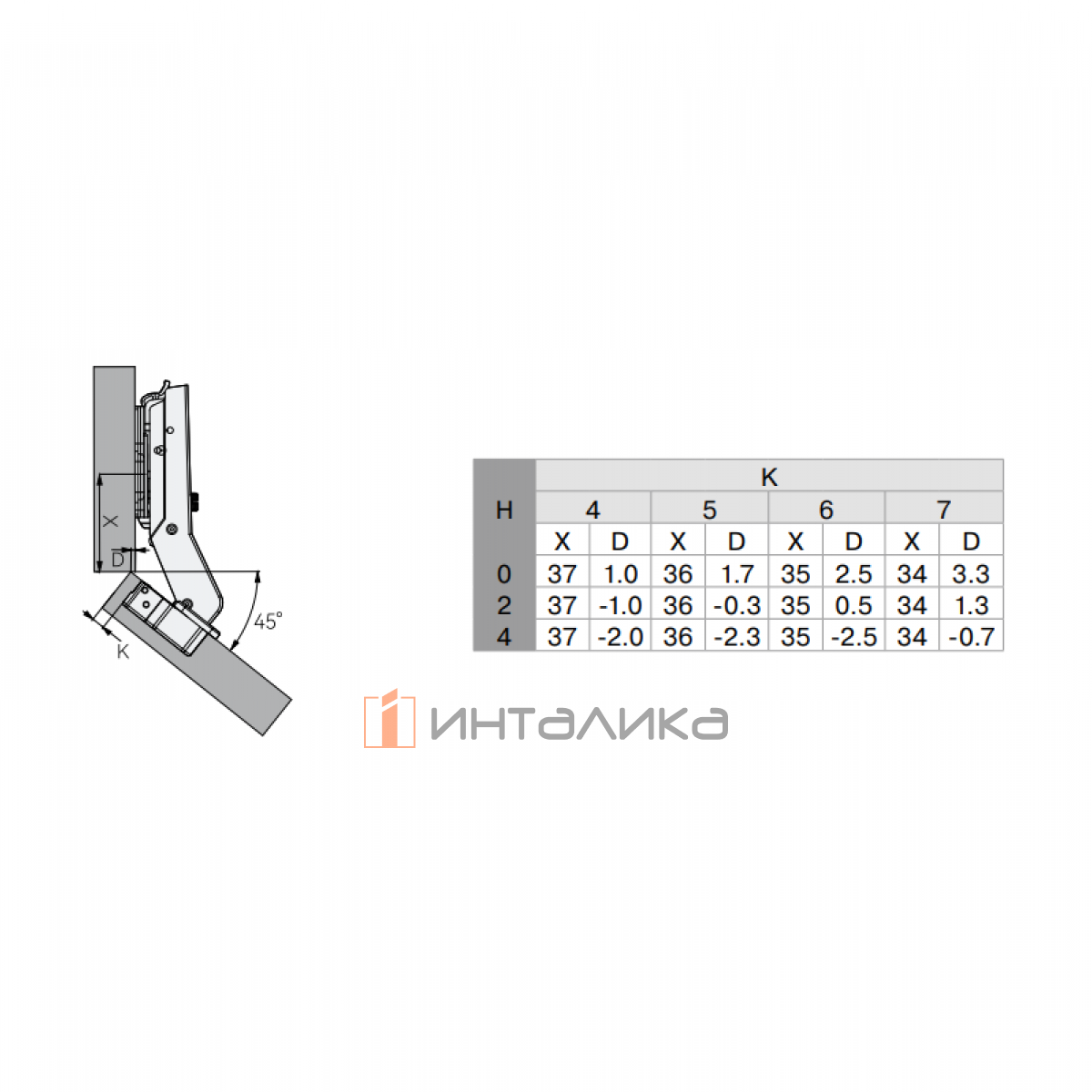 Скрытая мебельная петля ALPHALUX Titan для угловых фасадов +45°