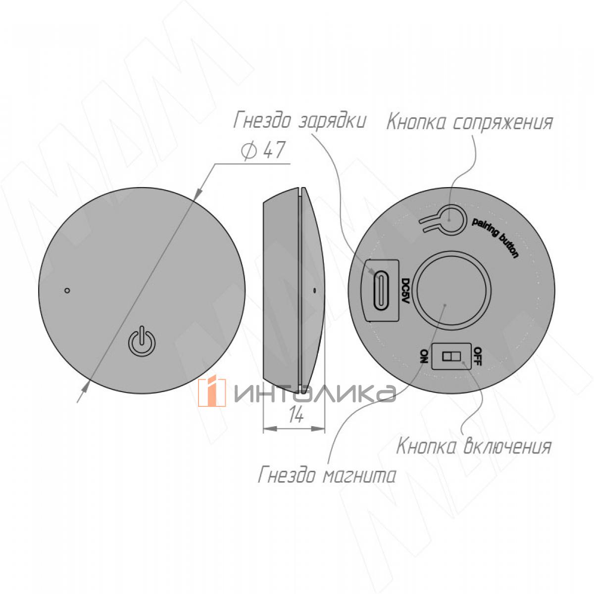 Применение: датчик используется для сопряжения с ресивером для включения/выключения светодиодных светильников