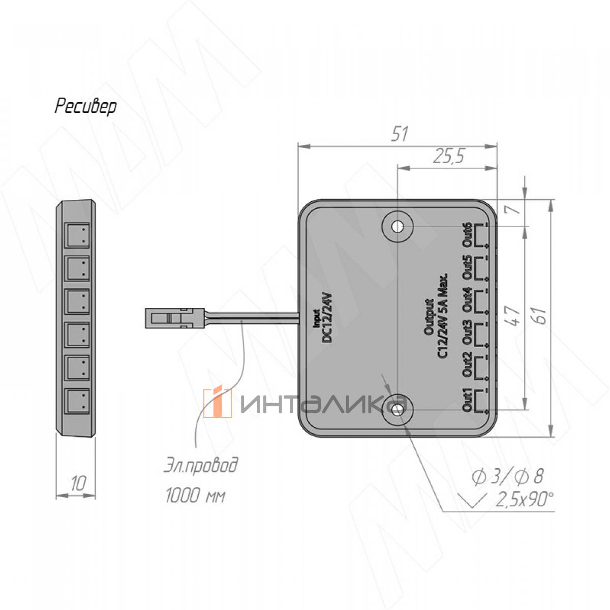 Внимание! Выключатель может работать в напряжении 12 и 24 В, но ресивер и провода оснащены коннекторами для напряжения 12 В. Для подключения светильников и блока питания с рабочим напряжением 24 В необходимо дополнительно приобрести провода-«переходники»