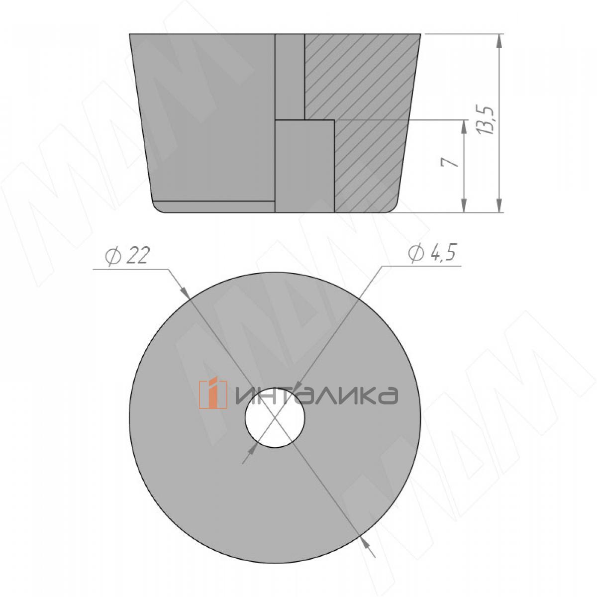 Подпятник с круглым основанием 22 мм и отверстием для крепления 4,5 мм