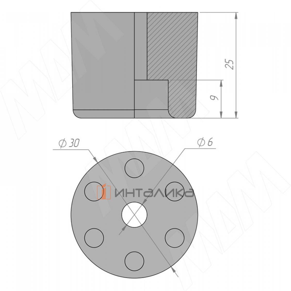 Подпятник с круглым основанием 30 мм и отверстием для крепления 6 мм