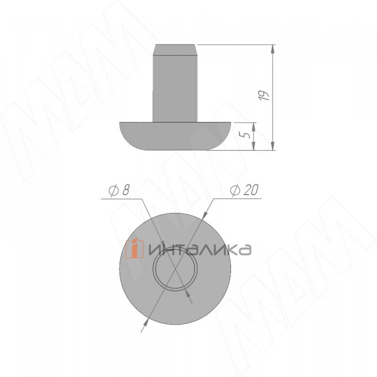 Подпятник с круглой плоской шляпкой под отверстие диаметром 8 мм