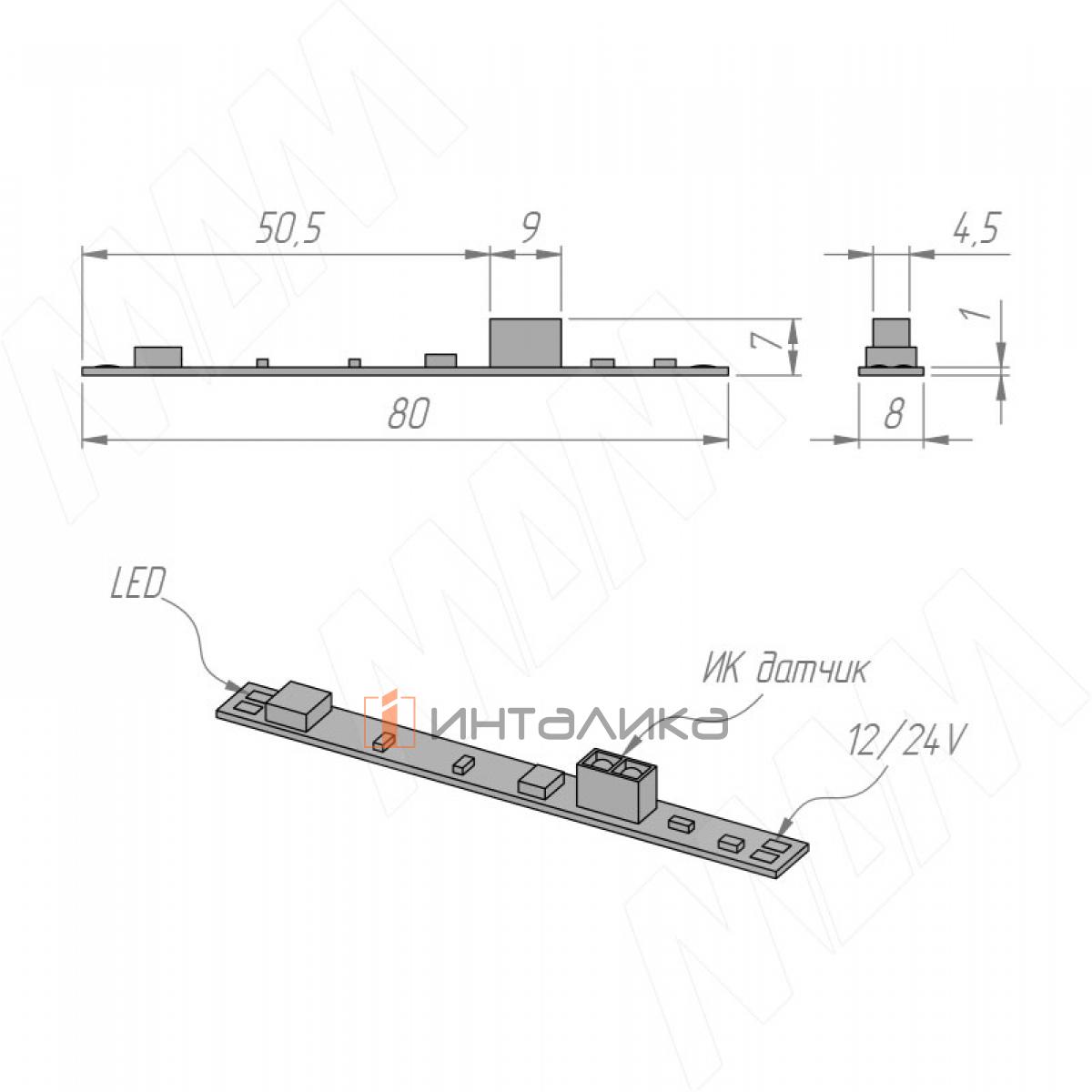 Способ установки: устанавливается непосредственно в алюминиевый профиль, в светорассеивающем экране необходимо сделать отверстие для датчика движения