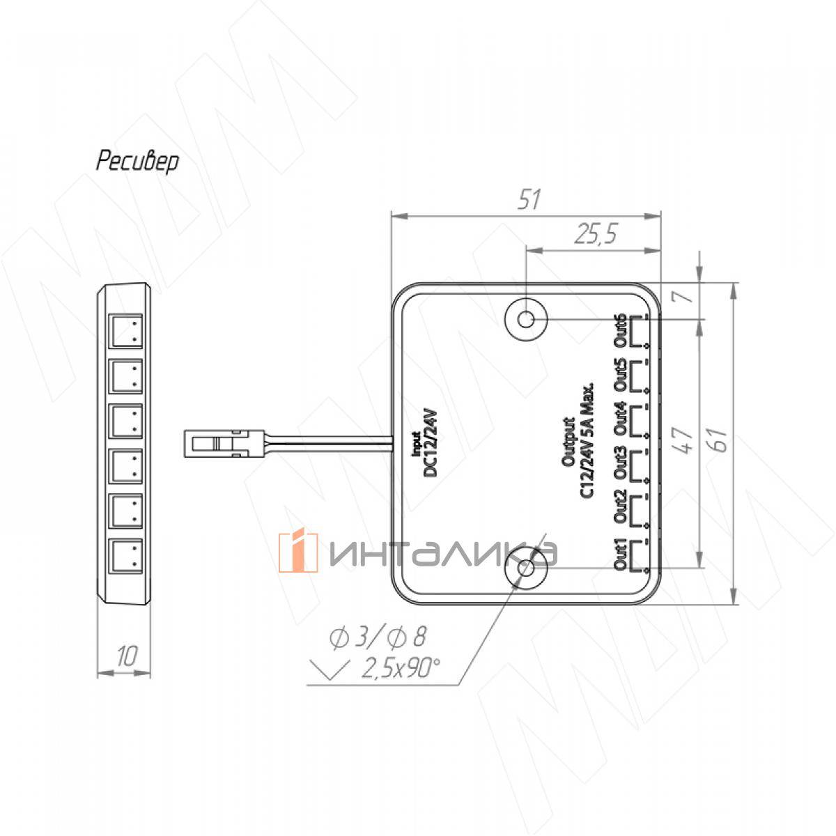 Внимание! Выключатель может работать в напряжении 12 и 24 В, но ресивер и провода оснащены коннекторами для напряжения 12 В. Для подключения светильников и блока питания с рабочим напряжением 24 В необходимо дополнительно приобрести провода-«переходники»