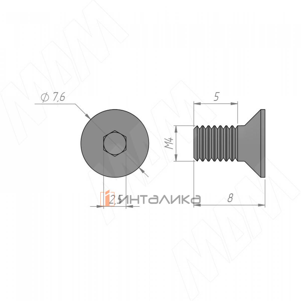 Винт с потайной головкой под шестигранник, M4x8, золото, HXS M4X8 GL MP