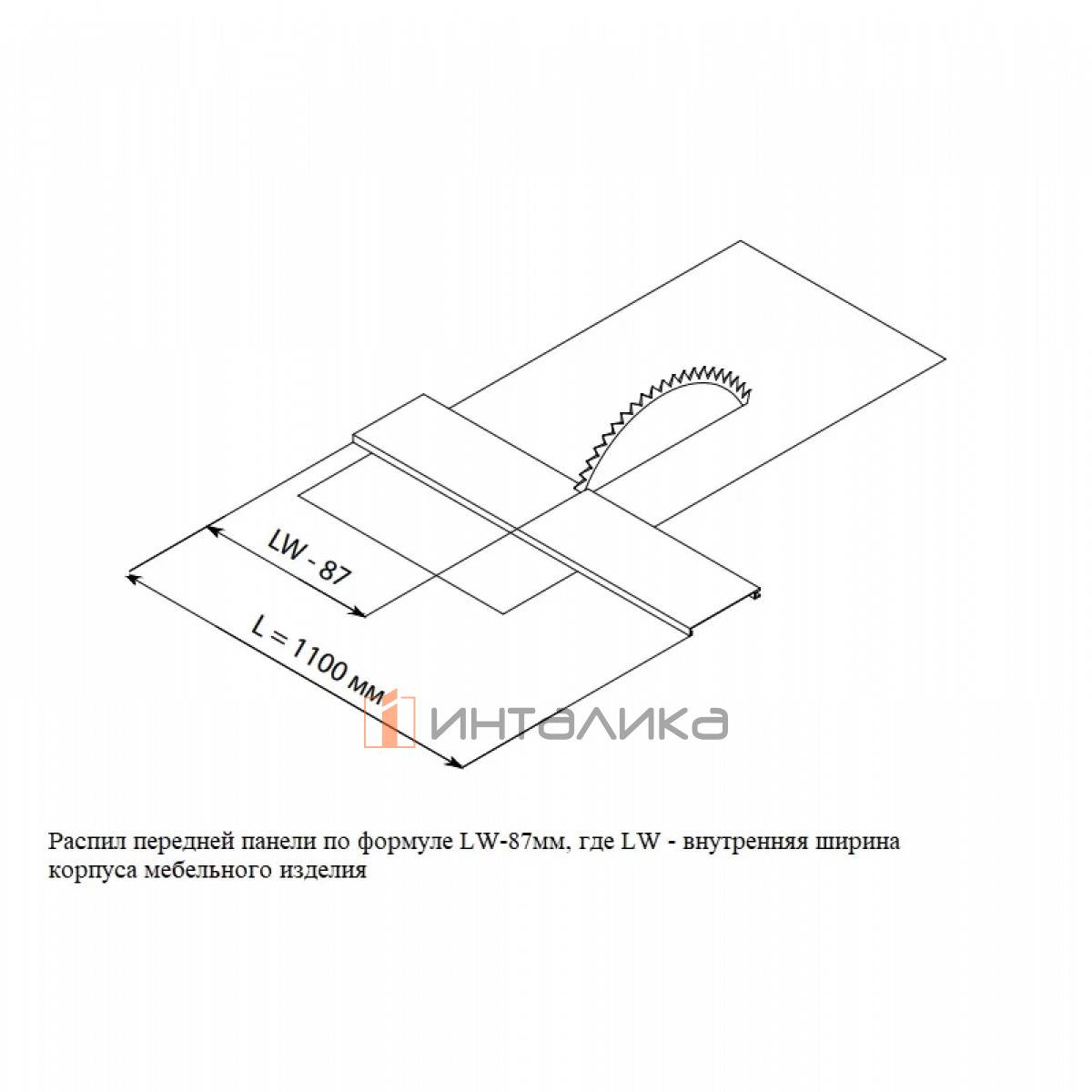 Распил передней панели по формуле: внутренняя ширина корпуса минус 87 мм
