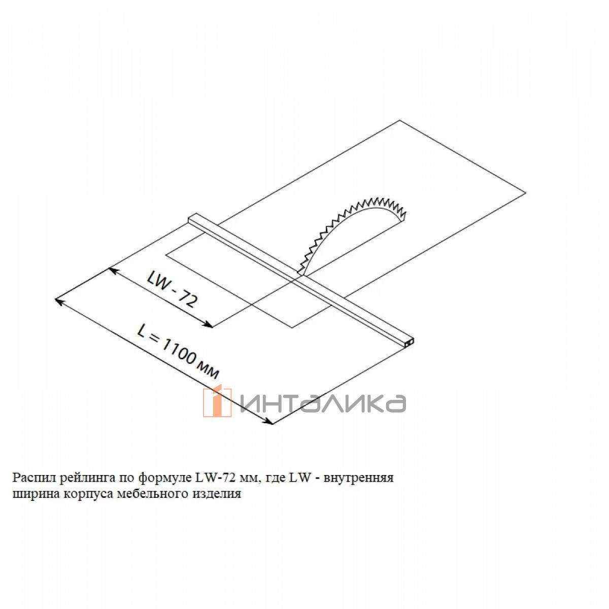 Распил рейлинга по формуле: внутренняя ширина корпуса минус 72 мм