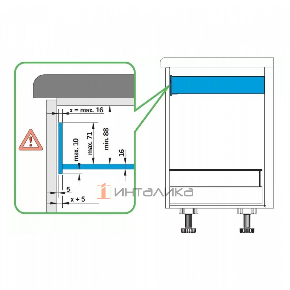 Основная часть крепится к дну внутреннего ящика, ответная часть монтируется на внутреннюю поверхность фасада