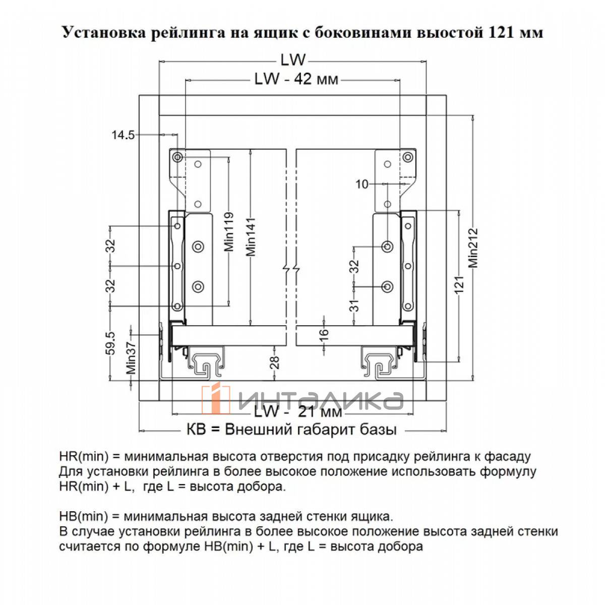 Рейлинги предназначены для увеличения высоты боковины ящика, придают жестокость ящикам с высоким фасадом