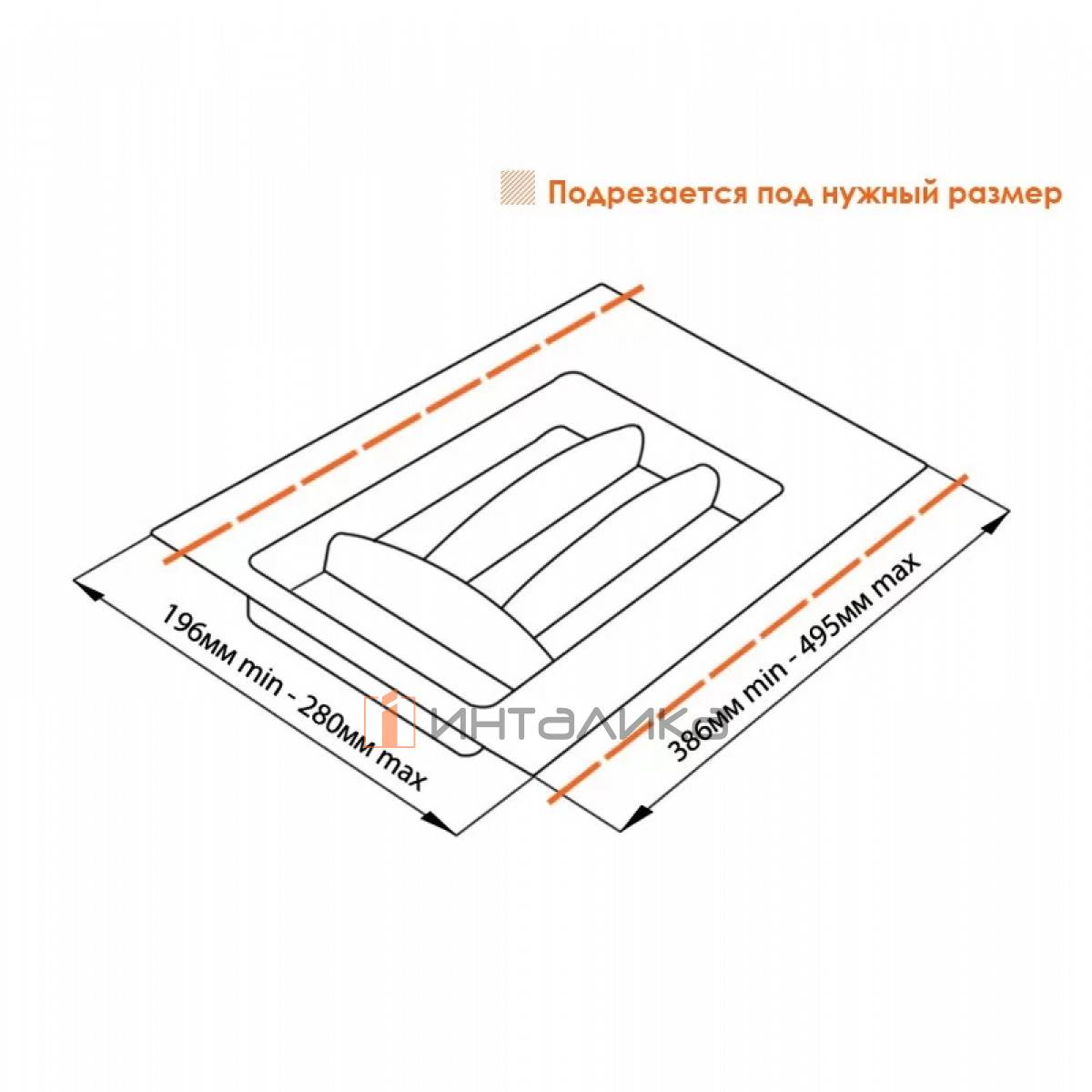 Габариты лотка: ширина - 196-280 мм, глубина - 386-495 мм, высота - 45 мм