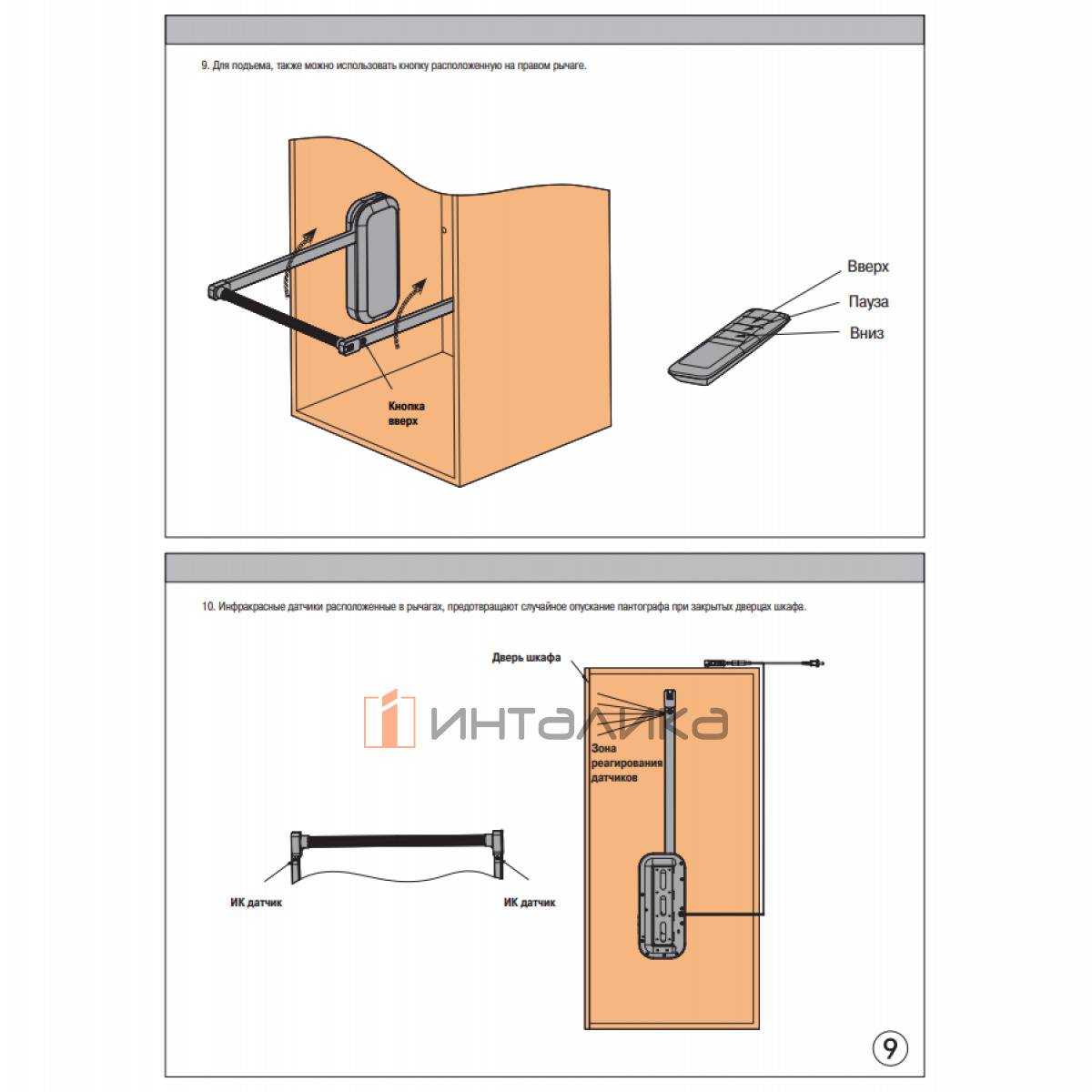 - инфракрасные сенсоры блокируют открывание пантографа в закрытом шкафу