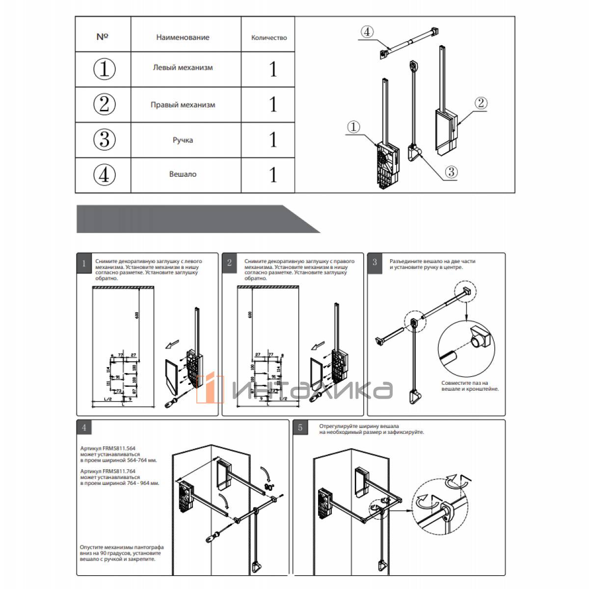 Ширина проема - 764-964 мм (регулируемая)