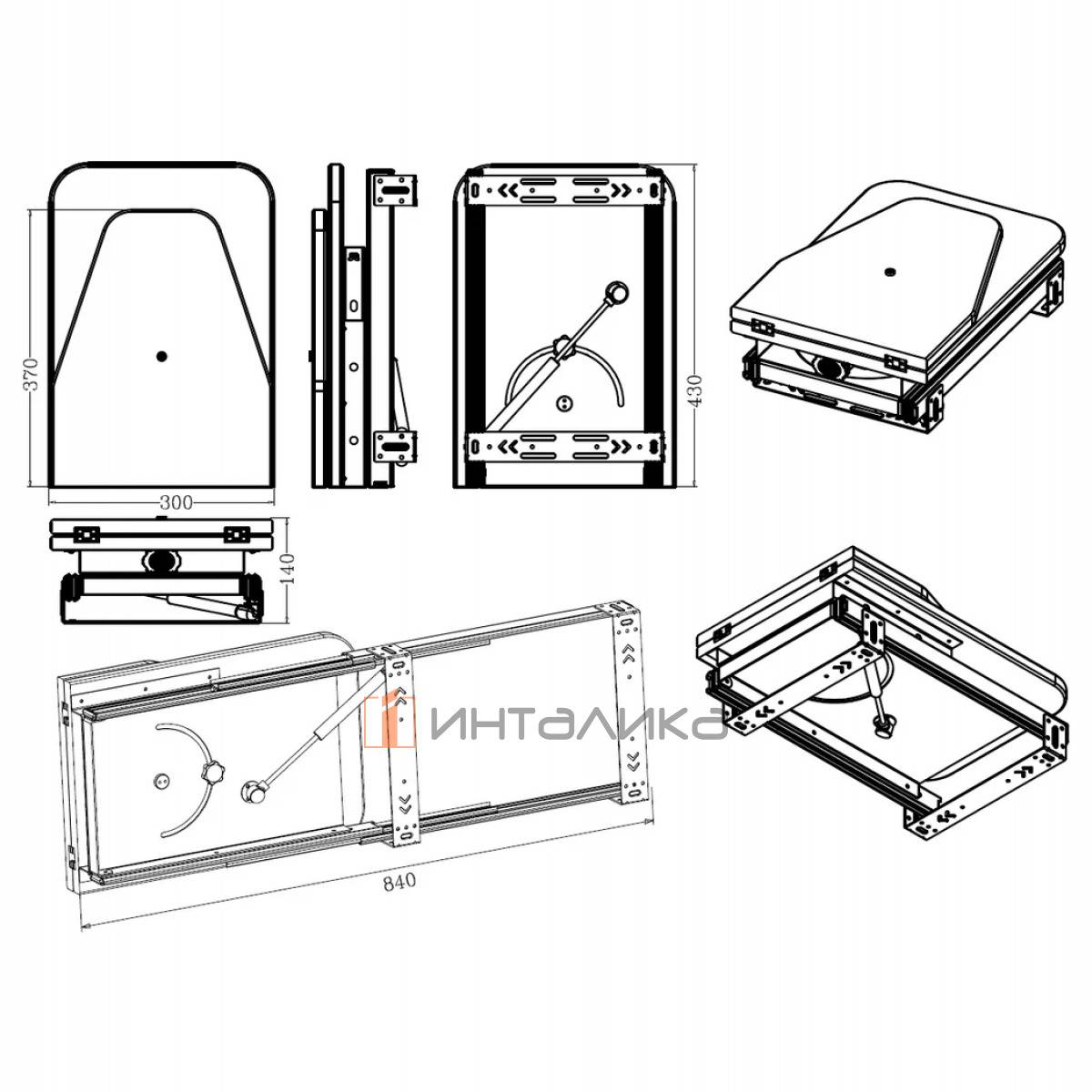 Монтажные размеры: ширина от 385 мм, глубина от 450 мм, высота от 140 мм