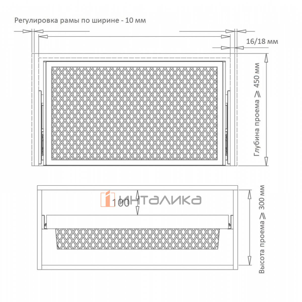 Регулировка ширины рамки +/-10 мм с каждой стороны