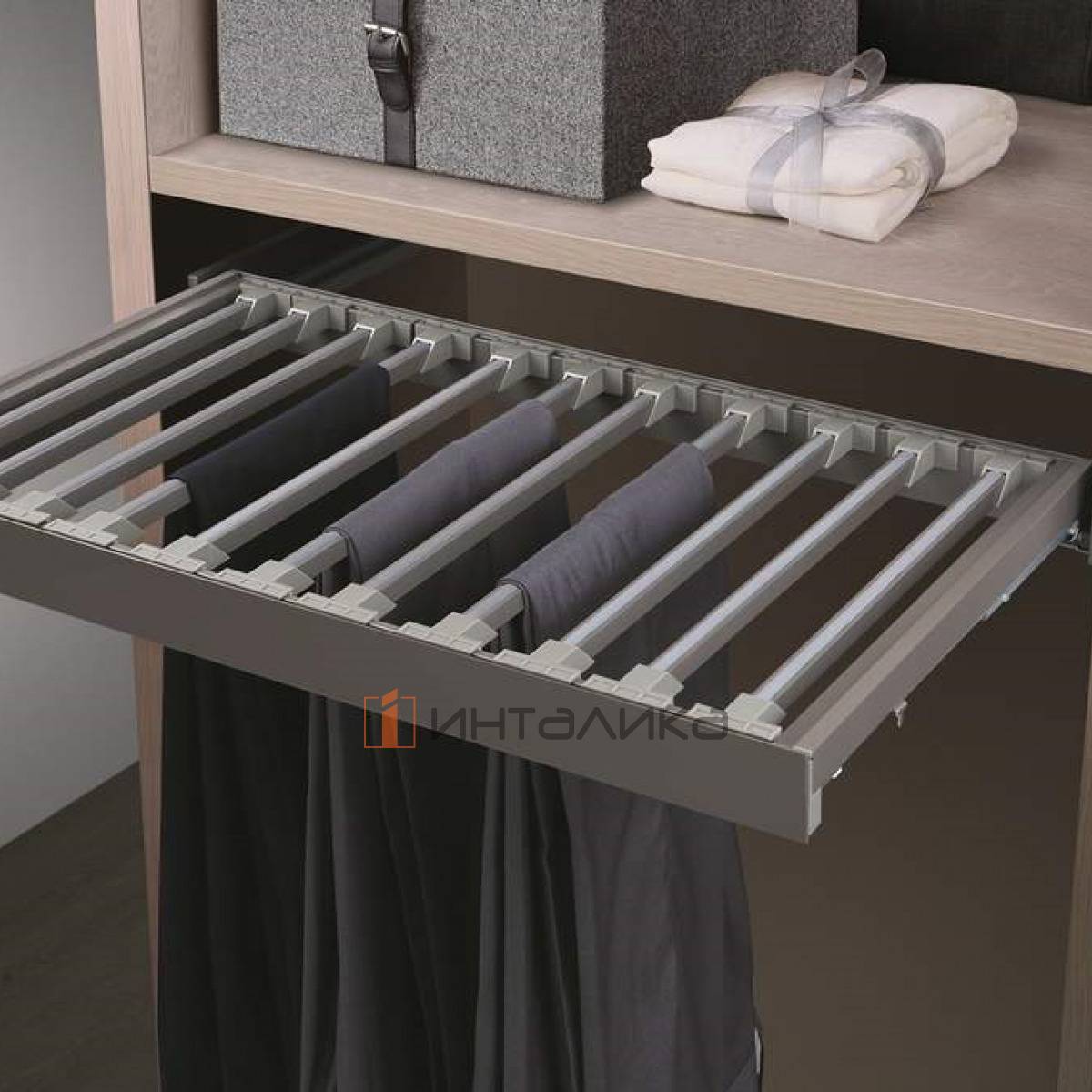 Выдвижная брючница наборного типа FIRMAX Alfa в базу 700, 9 перекладин, 664х420х56, плавное закрывание, полное выдвижение, G30, серый металлик, FRM5806.664.01