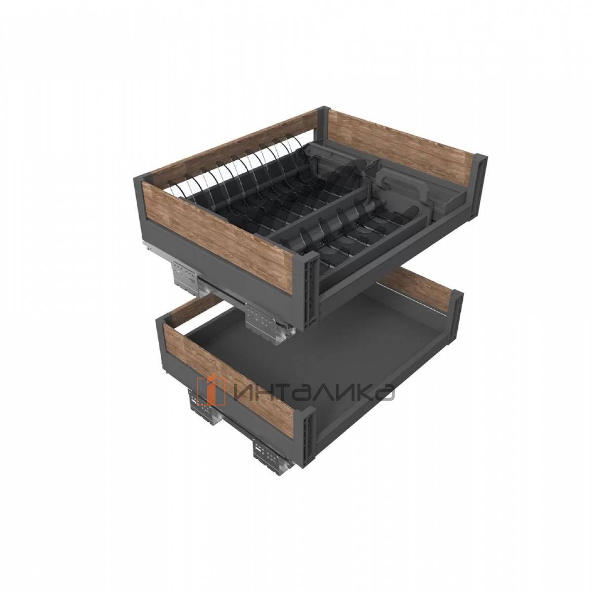Выдвижная корзина FIRMAX Dana Wood в базу 600, 564х436х173, плавное закрывание, полное выдвижение, антрацит/дерево, FRM1563.60