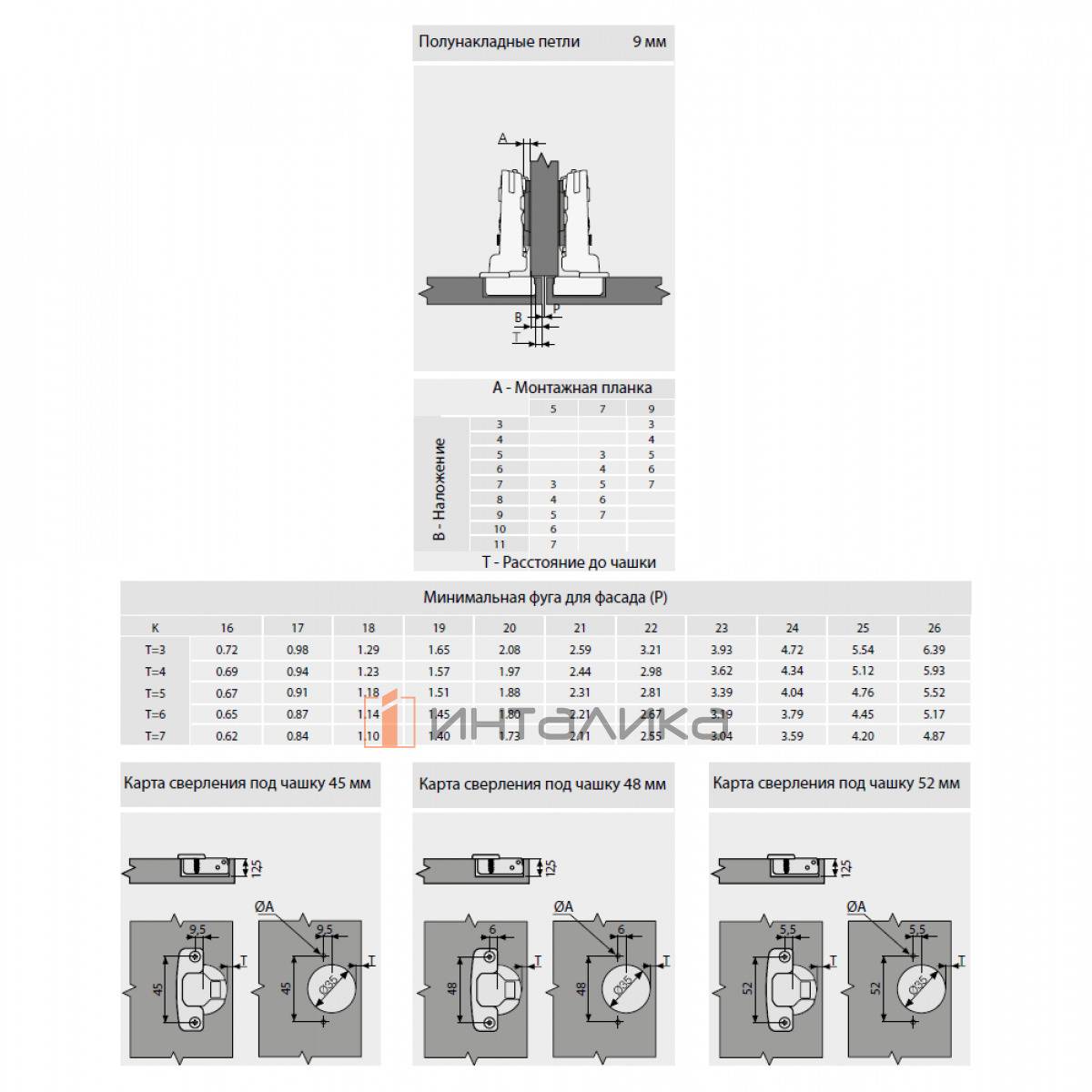 Скрытая мебельная петля премиум-класса SAMET Master Black, полунакладная