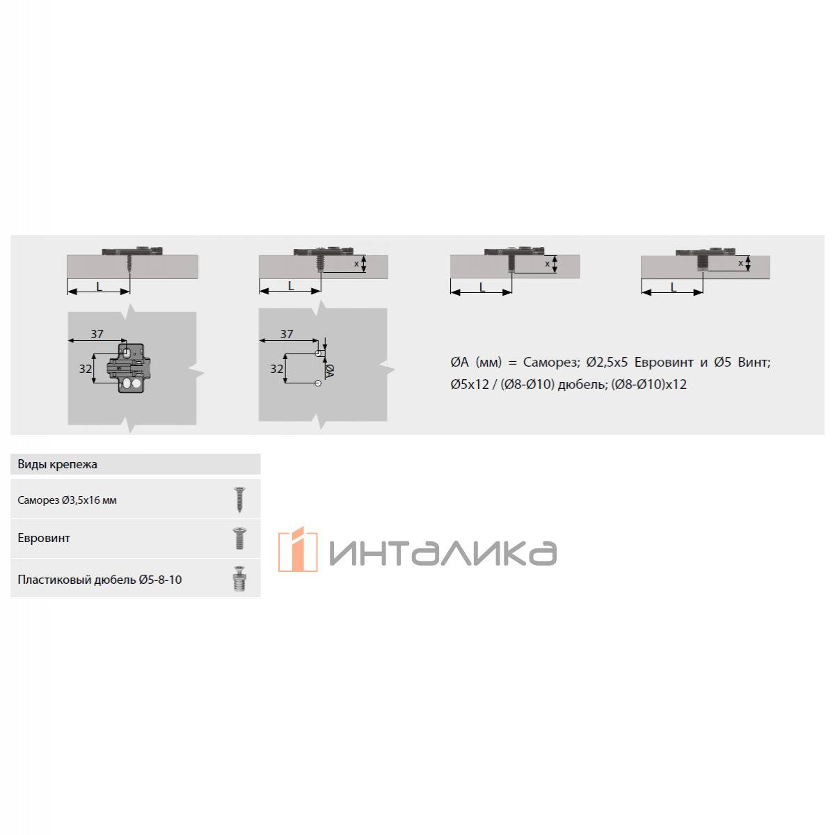 Монтаж на евровинтвы ø 6.3 x 14 мм