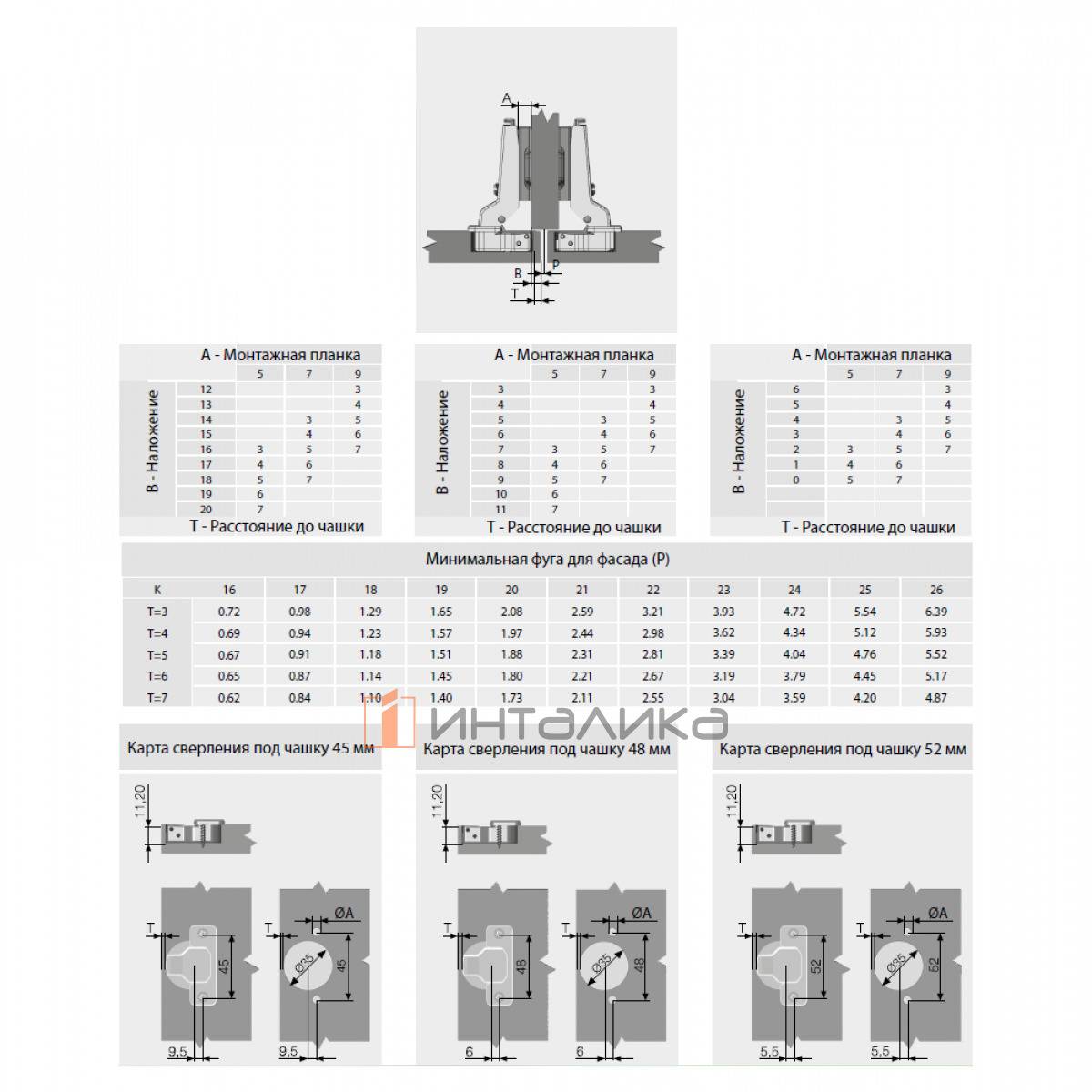 Скрытая мебельная петля SAMET StarTrack, полунакладная, без пружины